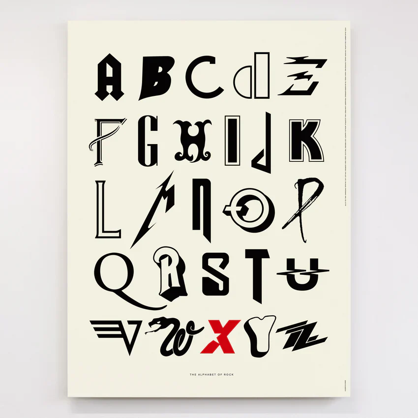 This A-Z print is made up entirely of letters from classic rock band logos. How many can you recognise?