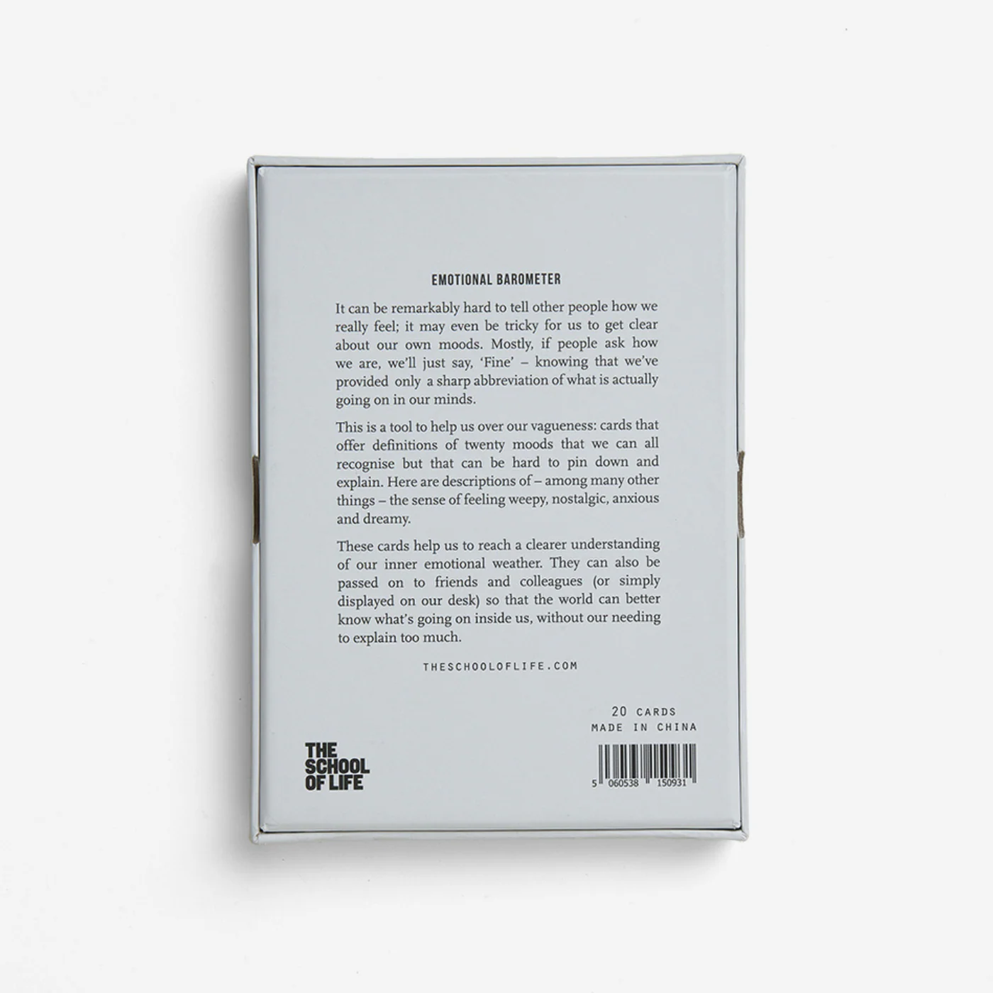 This is a tool to help us overcome our vagueness: cards that offer definitions of twenty moods that we can all recognise but that can be hard to pin down and explain. Here are descriptions of - among many other things - the sense of feeling weepy, nostalgic, anxious, and dreamy.