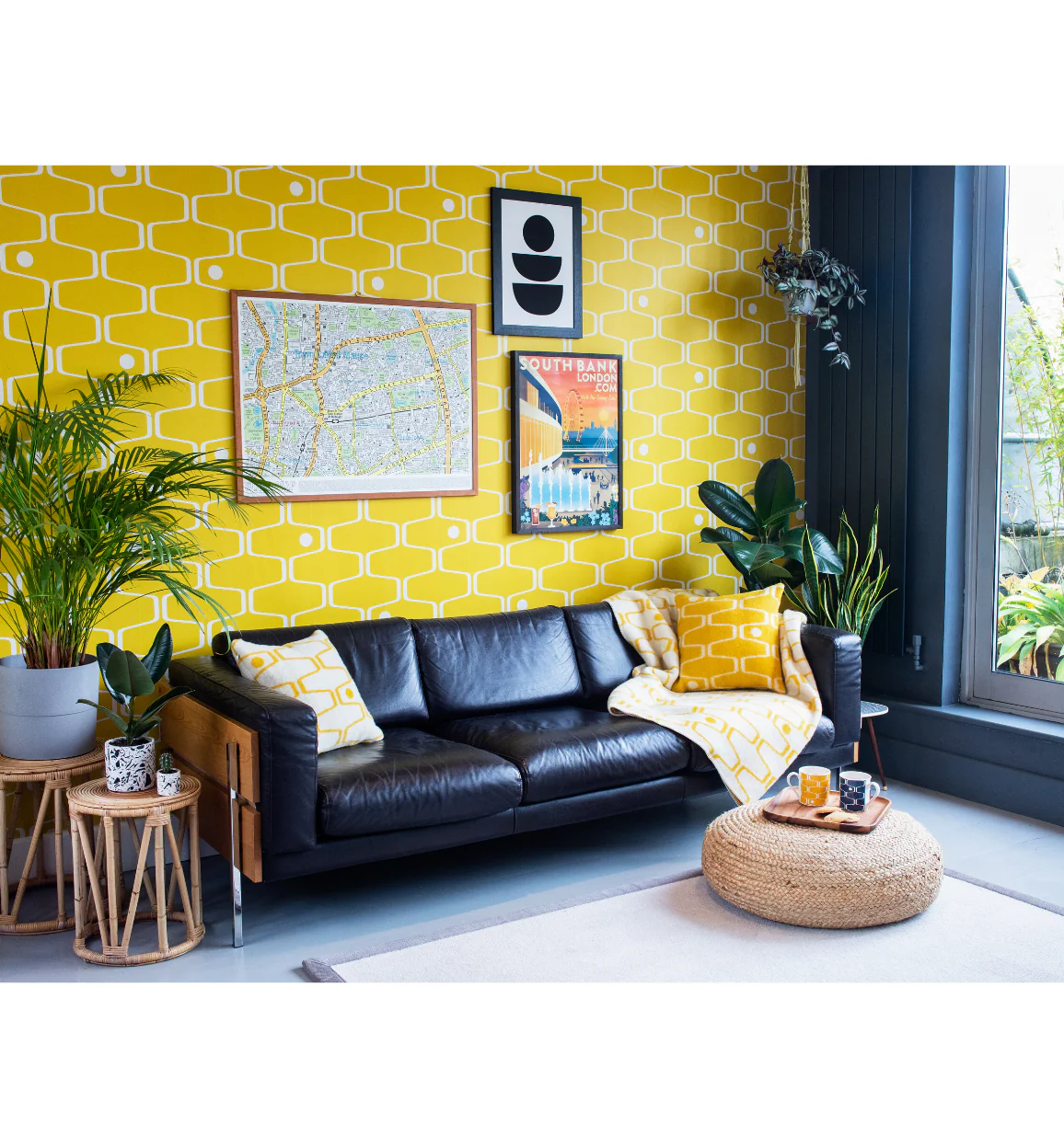 The pattern known as 'Net & Ball' was originally created by Peter Moro and Leslie Martin for the carpet in Royal Festival Hall when it opened at the Festival of Britain in 1951. It is based on a square wave seen with an oscilloscope - the visual representation of sound.